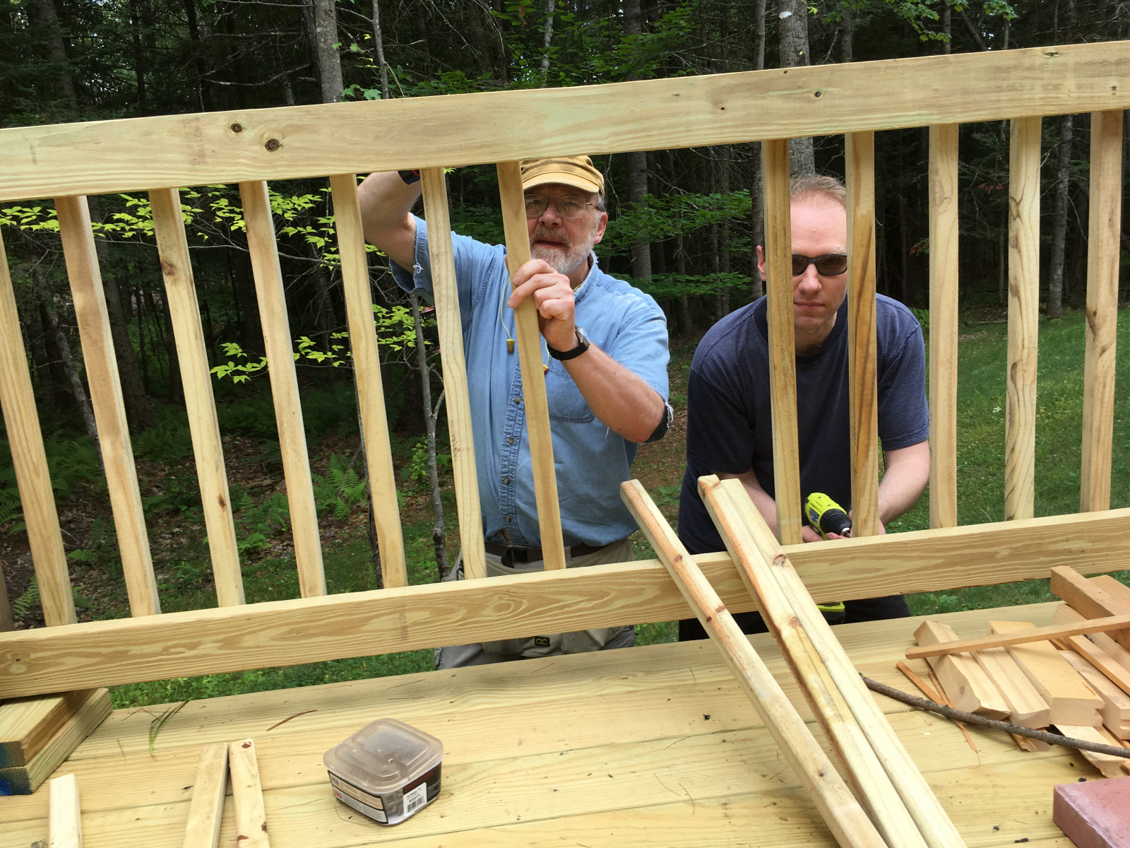 Galen helping his dad farther along in the deck-building process.